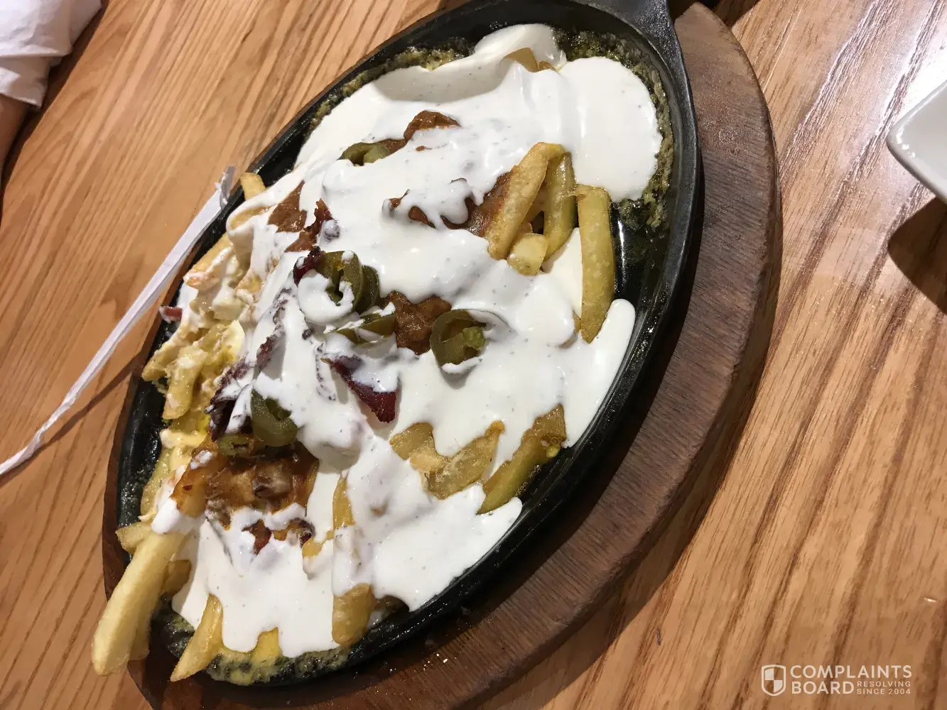 I took my girlfriend out to eat at Chili's this past weekend we order the two for 20 with the appetizer the Texas house fries the cheese cold not melted they gave us old fries I order the Texas dry rub ribs With the Mexican rice was dry my ribs was crispy and crunchy and my girlfriend ordered the grilled chicken wit onion rings her onion rings hard n dry we talk to manager but he act he didn’t care and he said da food was fresh I know da fries was not fresh dey was old I don’t lik hard ribs or over cook food I would something done this don’t make no sense