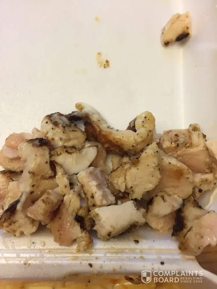 We ordered dinner last night from the Uniontown PA chilis. My husband returned home with an empty box where his quesadilla was supposed to be. I ordered my 3 year old the grilled chicken and cheesy pasta. The chicken was raw. Before I noticed it he ate a few bites. Hoping he doesn't get sick from this. Totoally ridiculous! Also my pasta I ordered was cold. We threw all of what we received in the trash. I will never return there.