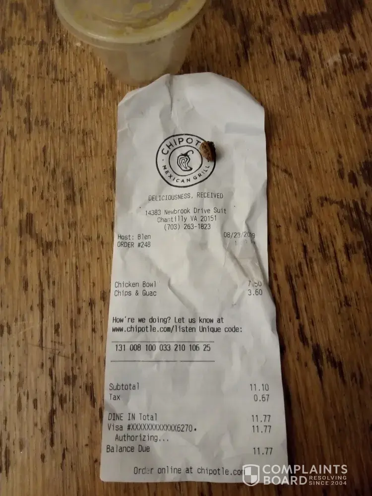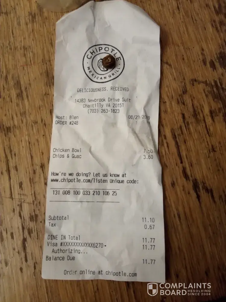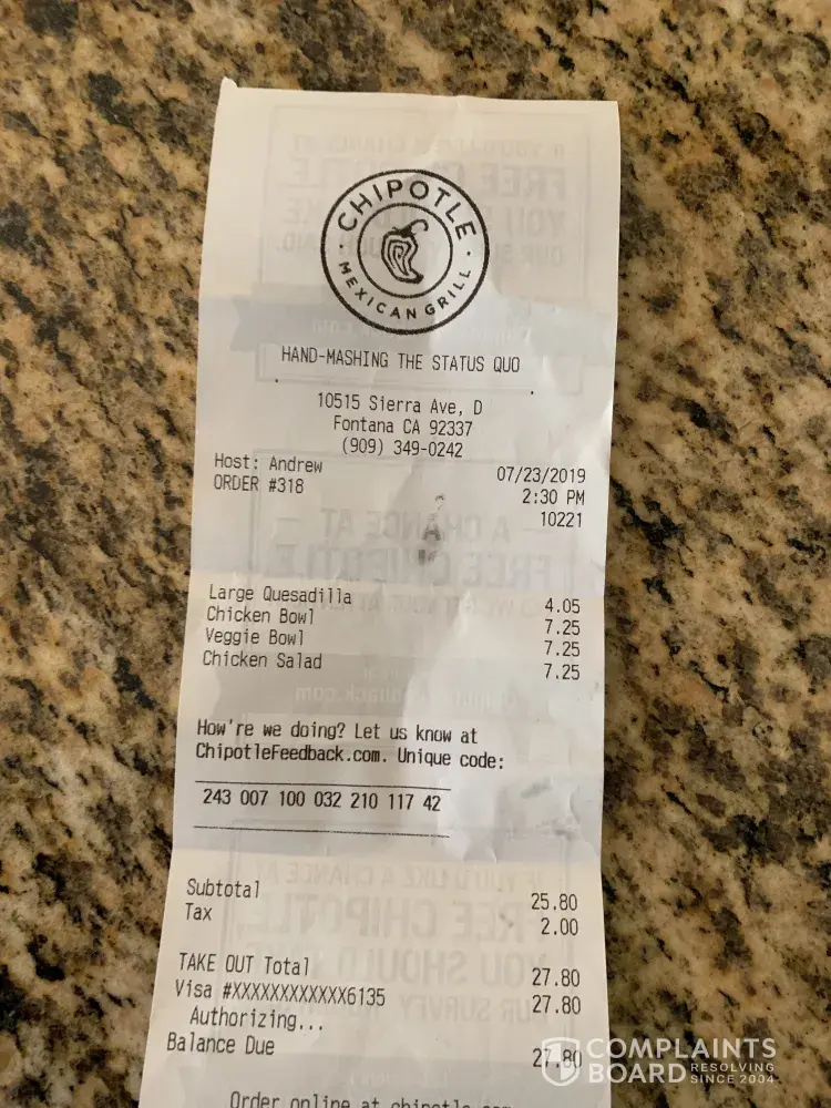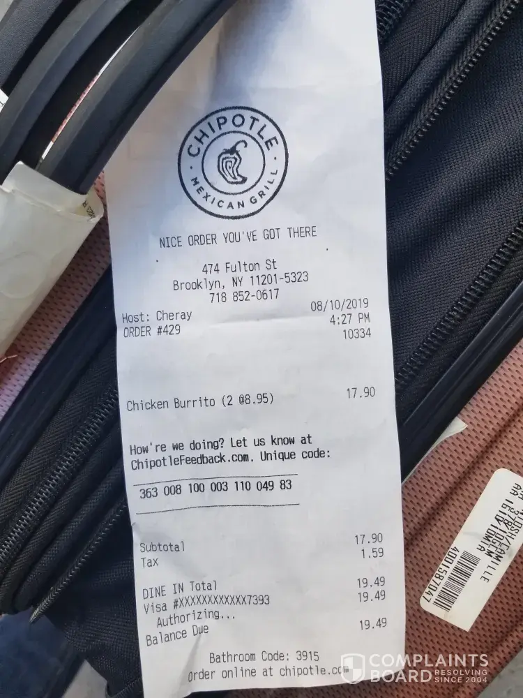 Read full complaintchipotle online pos