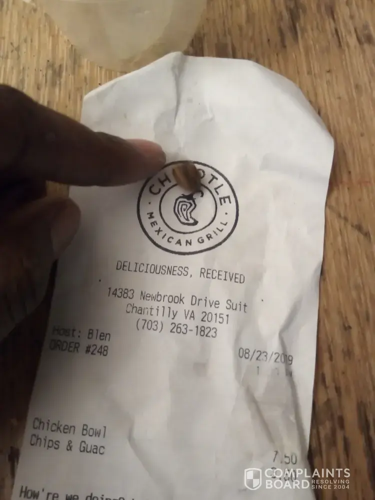 Read full complaintburrito bowl/ online order