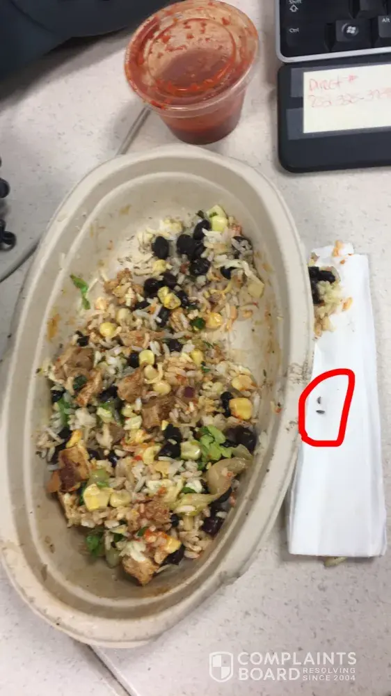 I decided to take my kids to Chipotle on 6/27/18 for dinner to go. They both ordered burritos and I decided to get a chicken bowl. I eat from Chipotle all the time. My bowl had: white rice, black beans, lettuce, extra cheese and corn) I ate half of the bowl last night for dinner(put the other half in the fridge) for lunch today 6/28/18. At 1:00 pm I decided to eat lunch. Well I noticed that something didn't look right about the 1st scoop of food I was about to proceeded to put in my mouth. I examined the food and OMFG it was some sort of bug or worm. I killed it of course. I WILL NEVER EVER SUPPORT CHIPOTLE EVER AGAIN. Let along ever eat at an Chipotle establishment again. I'm most definitely requesting a full refund from my purchase on yesterday. I have no idea if there were bugs in my kids food.