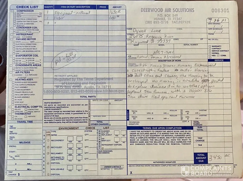 CHW assigned Quality HVAC for 28th July, 2021 giving me and my family no choice but to stay at nearby Courtyard Kingwood for 3 nites; and call my own Deerwood Air Solutions to replaced the 18-years old non-working components in the attic which were installed by the house builder in 2003.
