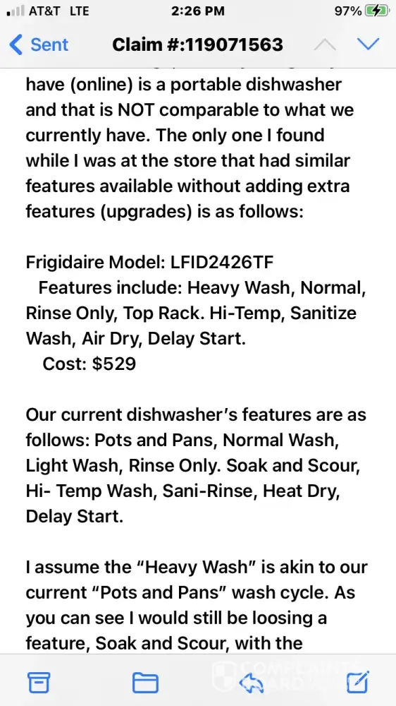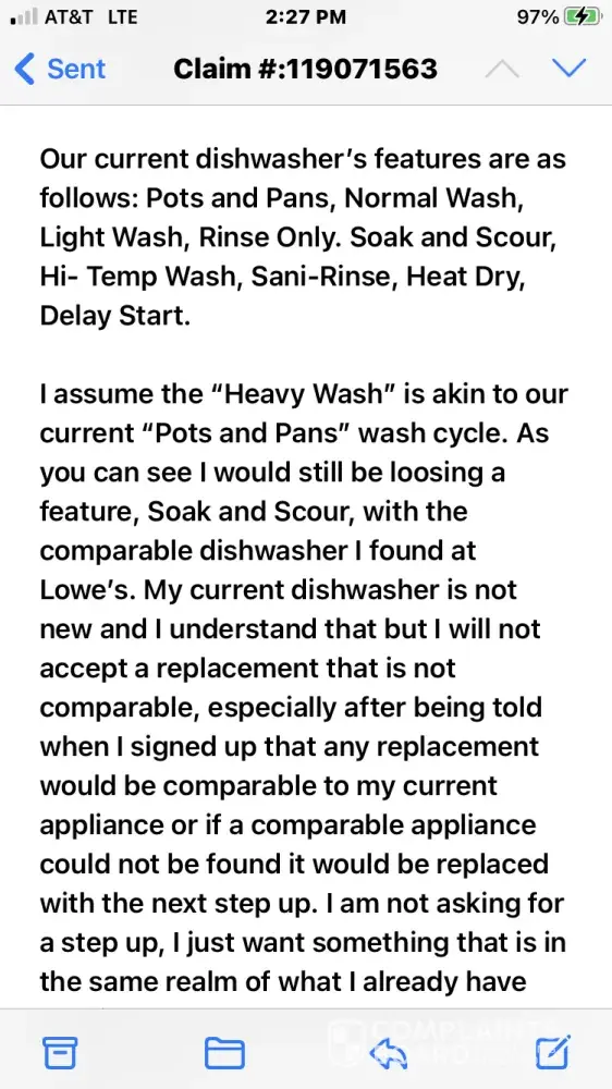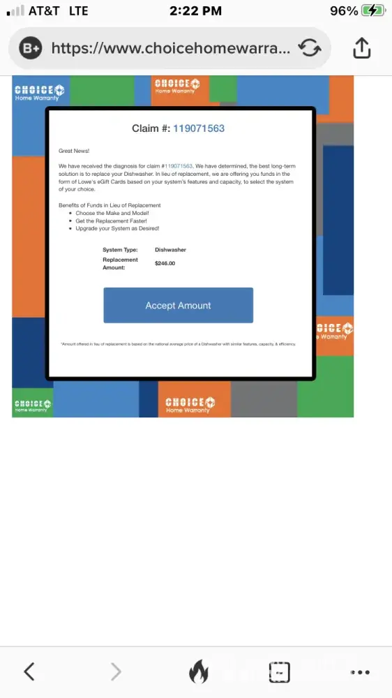 The dishwasher they told me qualified to be replaced. They offered me $246 in the form of a Lowe's gift card to buy a replacement. The only dishwasher that I can get from Lowe's on that budget is a portable dishwasher. The only comparable dishwasher I can find through Lowe's costs $529.