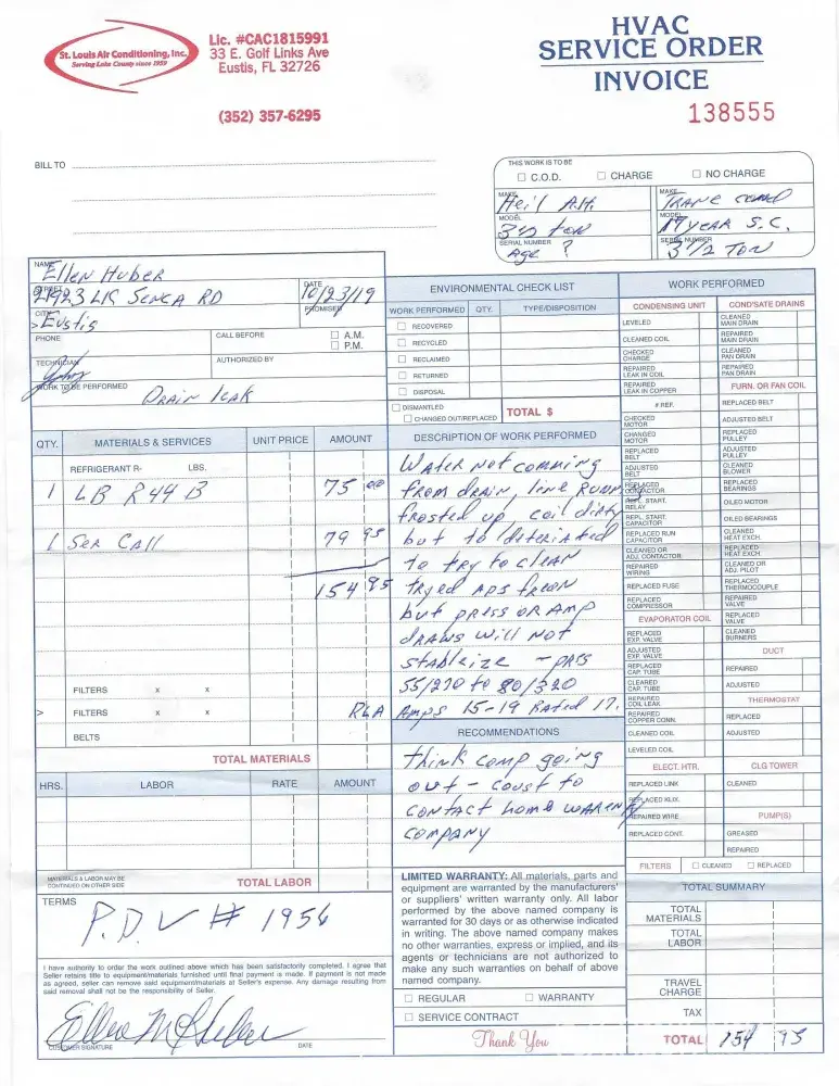 He said their were additional leaks from the pressure test. He never did one.