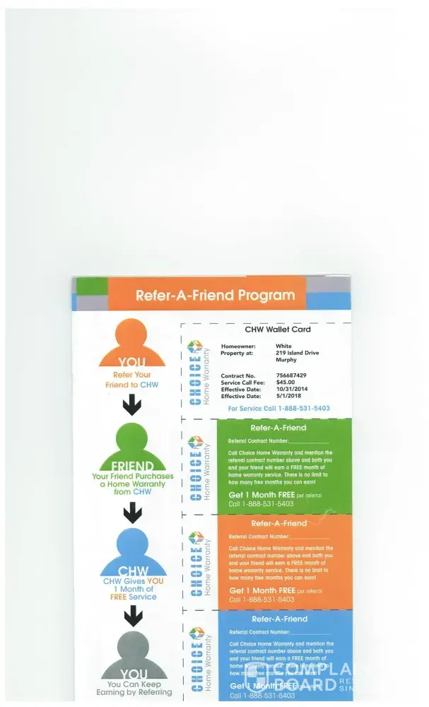 Choice Home Warranty I am complaining about my home choice warranty. I was told that I would receive a call back when