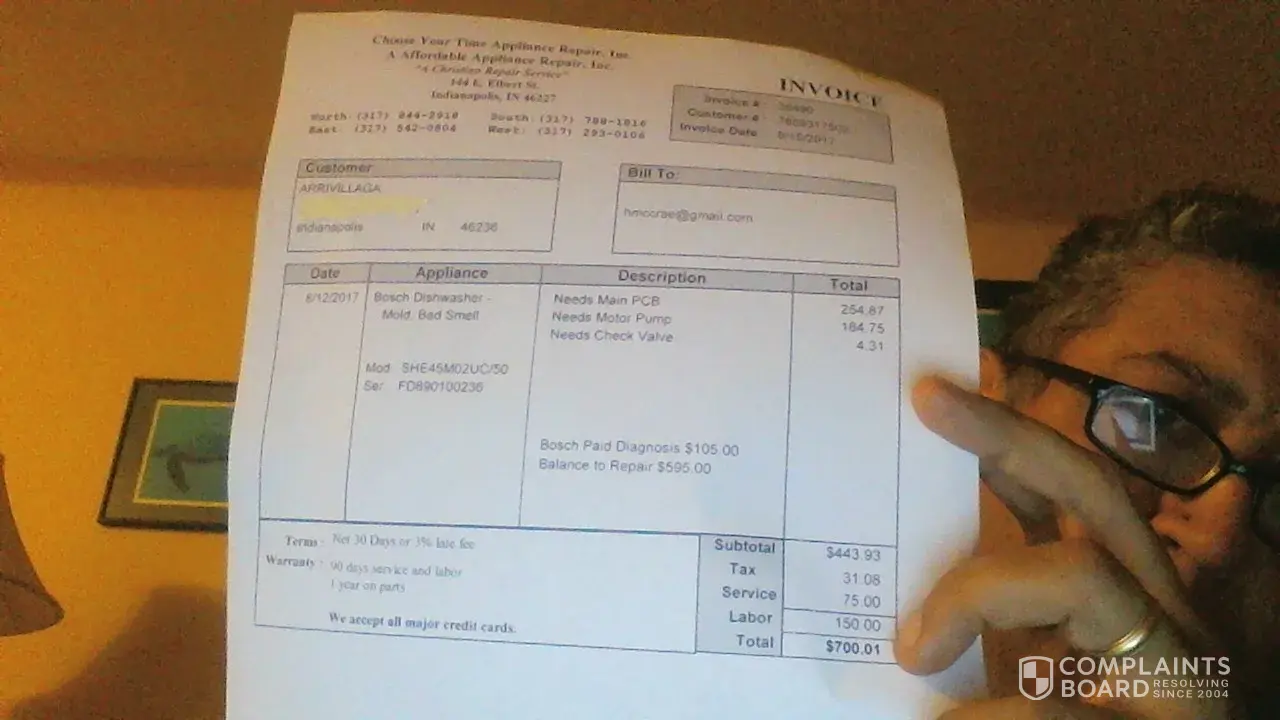 On 8/15/17 I was given an offer of $260 instead of repairing or replacing my dishwasher after getting a written estimate for the amount of $595. The contract states that "commercial grade" brands, such as a Bosch (the brand of the dishwasher in question), has a limit of $1000. I feel the offer of a $260 buyout is to low, because the unit would be impossible to replace for $260. I am thinking that I will take this to arbitration and share my experience with the facts on several social media outlets if this is not resolved in a fair way that can refute the costs I would actually pay to get the unit repaired or replaced.