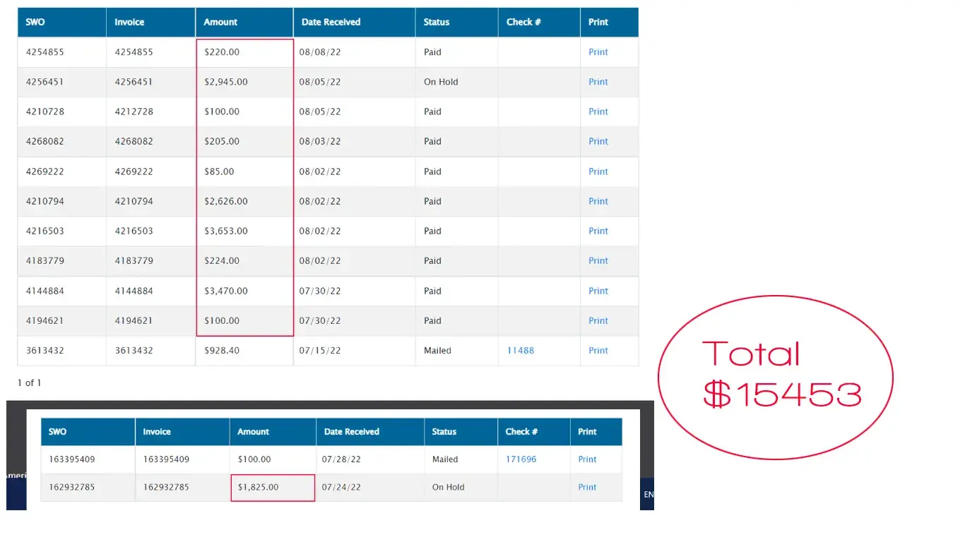 We are a heating and cooling contractors we had started to work with choice home warranty on June 2022, during the next 3 months June July and august we had done multiply jobs for choice, they are stating that payment would be released after one month from finishing the job so on July they have mailed 2 checks ($928, $100) we continued working with them...