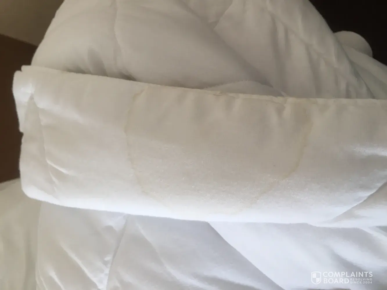 -Sheets and comforter with sketchy stains, had to ask to have changed. No apology ever offered just told by housekeeping that it was a dryer issue, even after being shown a caked in stain. This was repeated by the same front office lady the next morning. As if to say it wasn't dirty.
