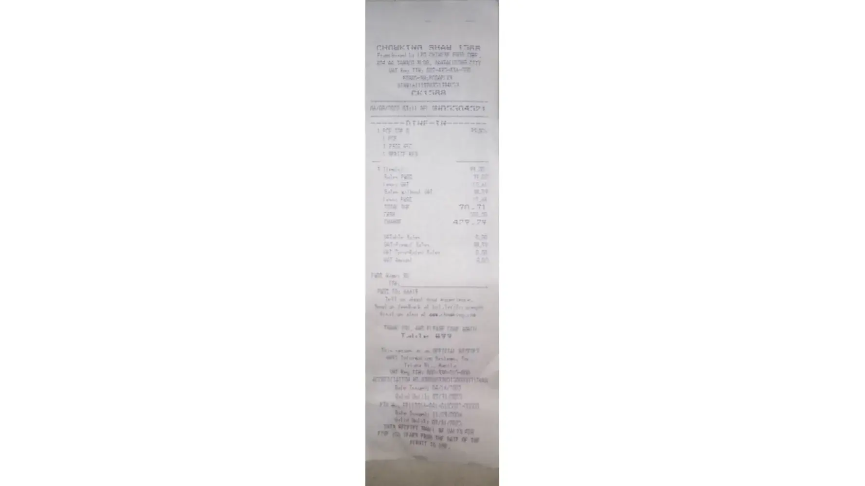 Me and 5yr old my daughter have order tbe following at chowking megamall 1 wanton reg 1chicharap 1 butchi platter ( my daughter favorite) 2 BCF top All for to go or take out OR#[protected] Just to be disappointed cause when we arrived home our take out food is incomplete. The Butchi platter was not included in our take out food. Nagbayad lang ako sa wala. Ck1716 yung nakalagay sa Receipt