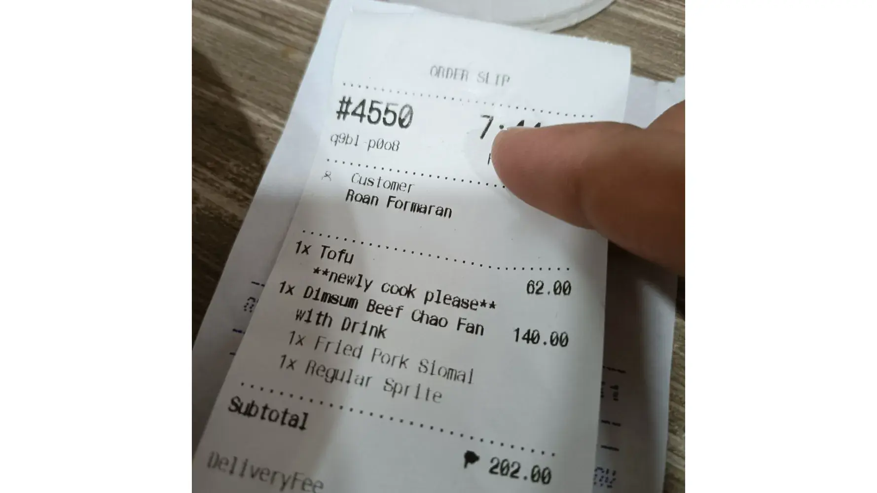 Order grab food around 6:40 and then it's arrive 7:00 my order id is GF-674