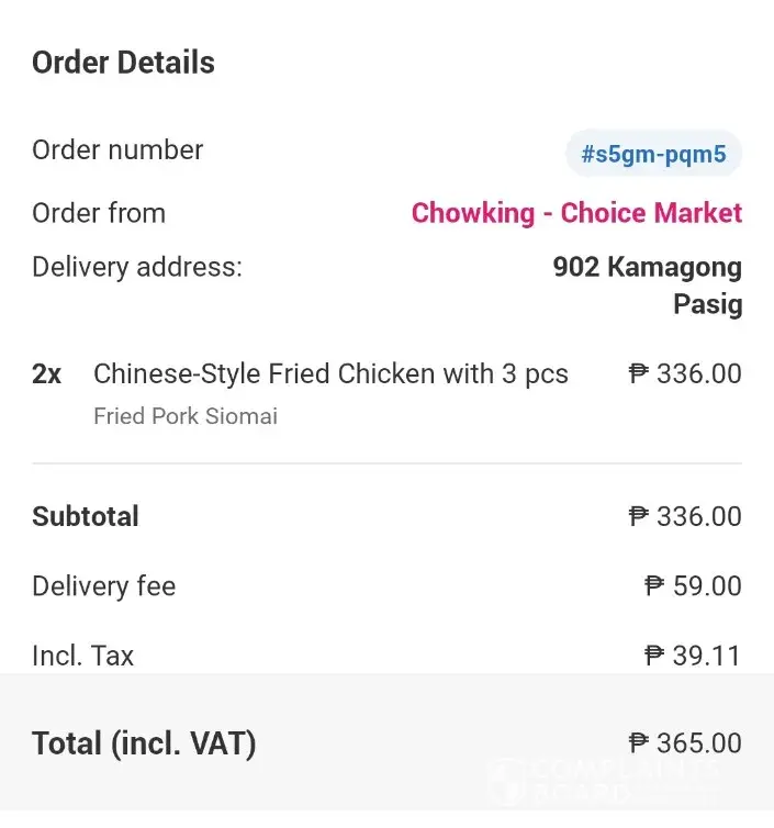 This so first I order at foodpanda and this is a chowing choice market I order food with halohalo but I didn't received the halohalo . There is also a proof shows in the receipt halohalo is now included which I pay for it I have attachements shows that I pay for it . At the same time I did not received a valid receipt from the store I walk in and tell what's happened they ask me to file it at food panda which I did and due to multiple complains I have from chowking they can't assist me .. so I pay for the food I didn't received because chowking forgot to included it without notifying the customer . And not issuing a valid receipt .. so I just passed that since it's time consuming and no one is willing to help .. and compensate or even do a necessary actions .