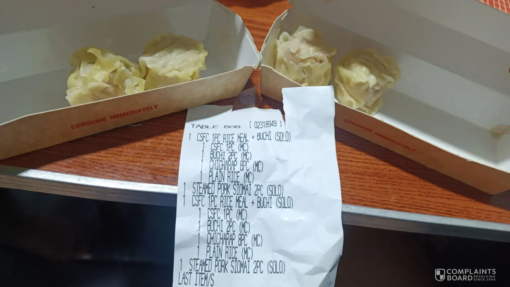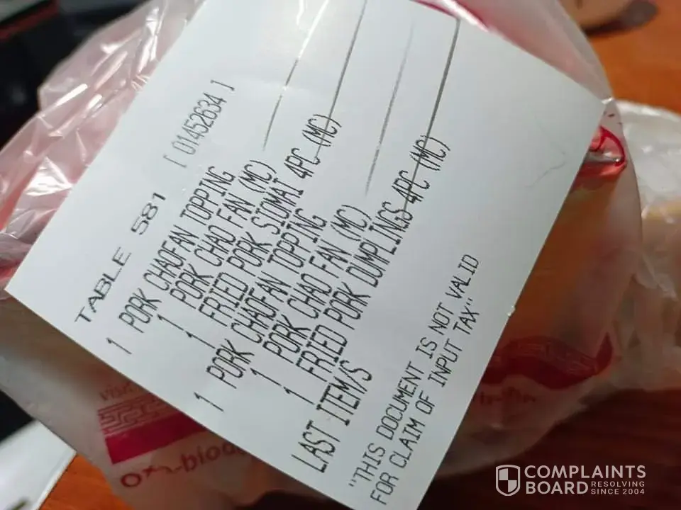Today it happened again I pay for food with 3 PCs siomai per order but I received 2pcs only. Now it's misleading , and again pay for the food I didn't received plus not issuing a valid receipt I think chowking should be accountable for this so it will not gonna happened again. I would like to get my money for the foods I didn't recieved or compensate me since this is really inconvenience and I wasted a lot of time . Already I even send an email to chowking but no response please check attachment s .