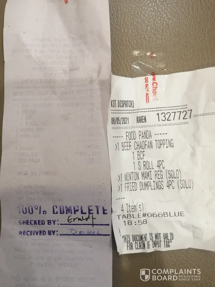Pero nung kinain na po namin ito around 8:10 pm, yung kanin po ng chowfan niyo ay LASANG PANIS at amoy panis how come na ganun po nangyari, naiserved niyo po ba ito ng lapsed? Purkit po ba naka advance order ganun nalang po na isesrved? Kaya po siya nakapending ng 30 mins sa inyong device to make sure na bagong luto po yung maisesrve.
