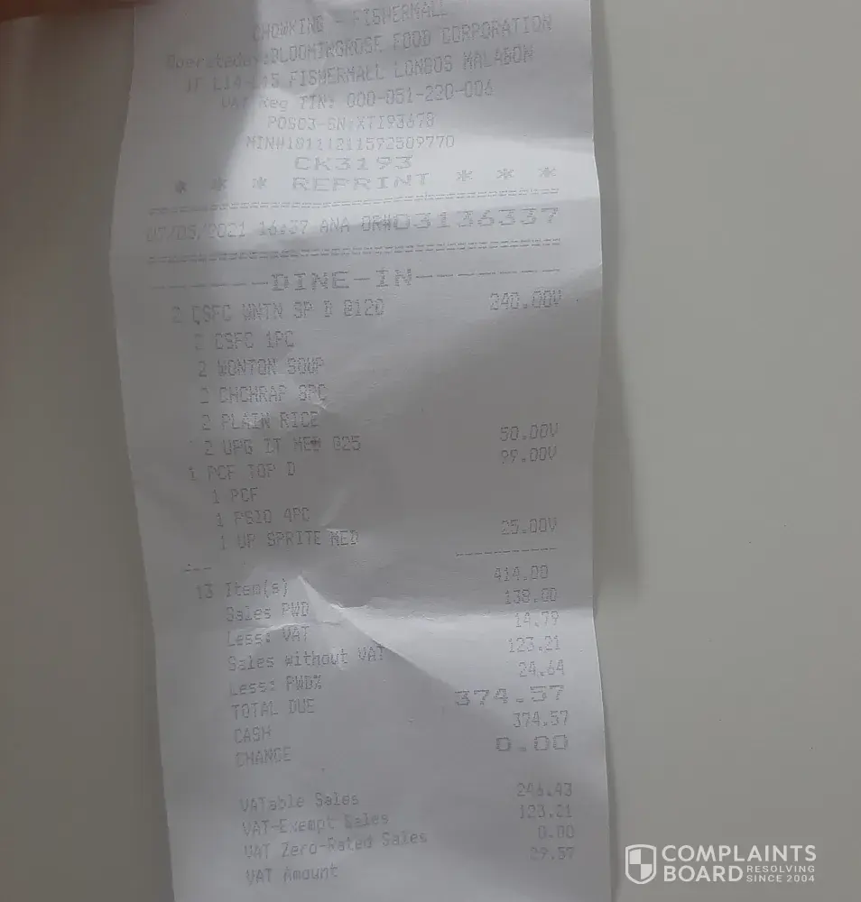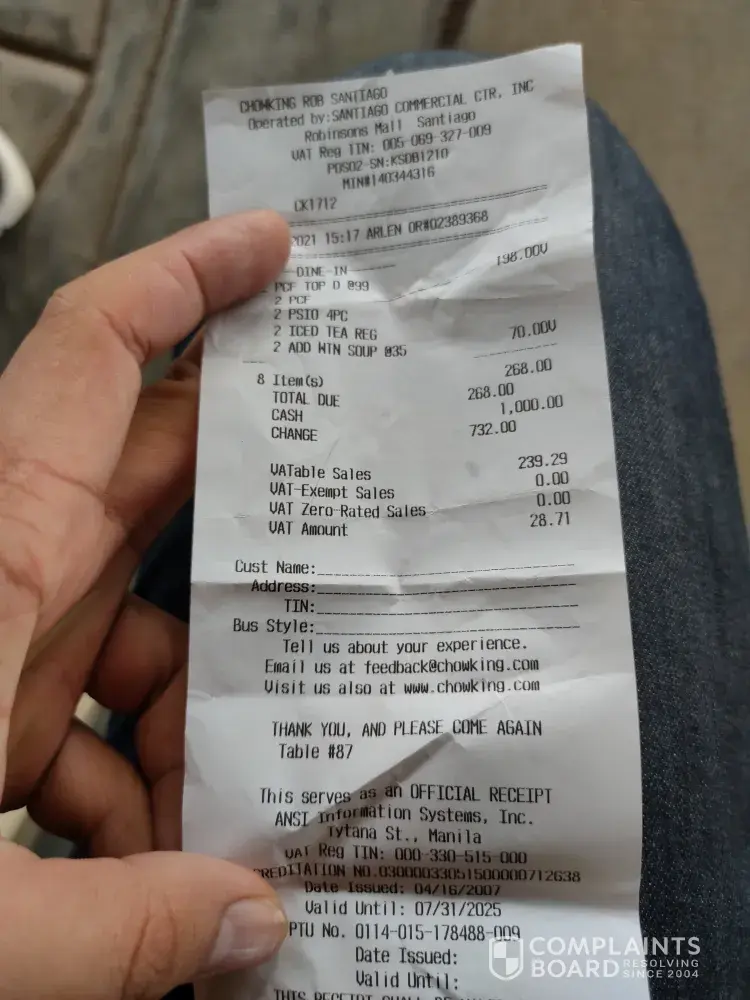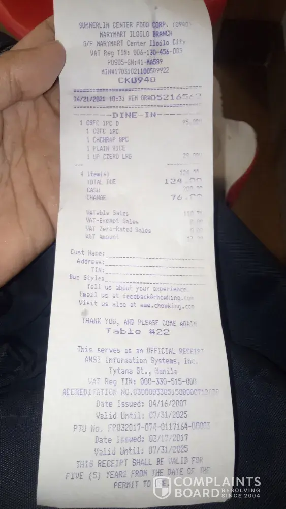 Chowking Complaints Page 18 of 62