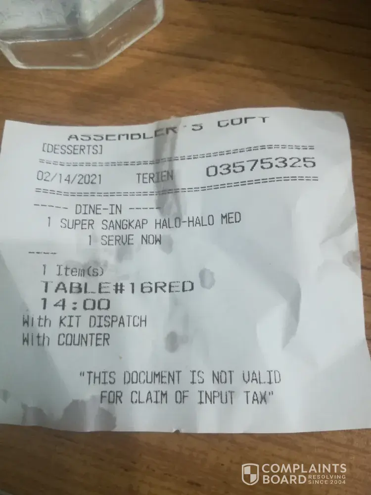 I order sweet and sour lauriat, 1pc chicken and small halo halo at 11:16pm and I got my order on 11:58pm. And I noticednthat my small halo halo is missing I tried to look for my receipt for follow up and i notice that the cashier failed to issued me an official receipt so i have to talk to the manager about it.