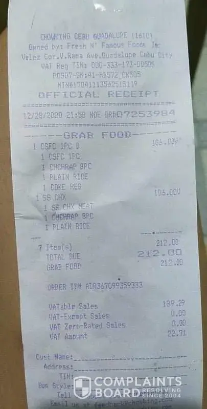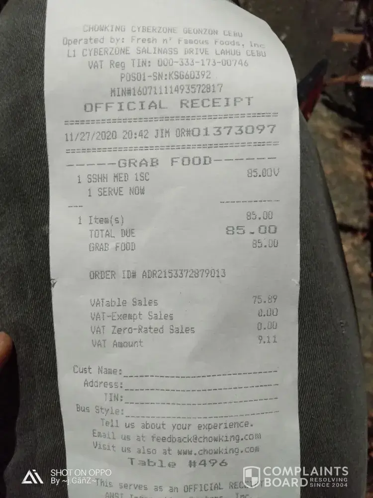 Chowking Complaints Page 23 of 62