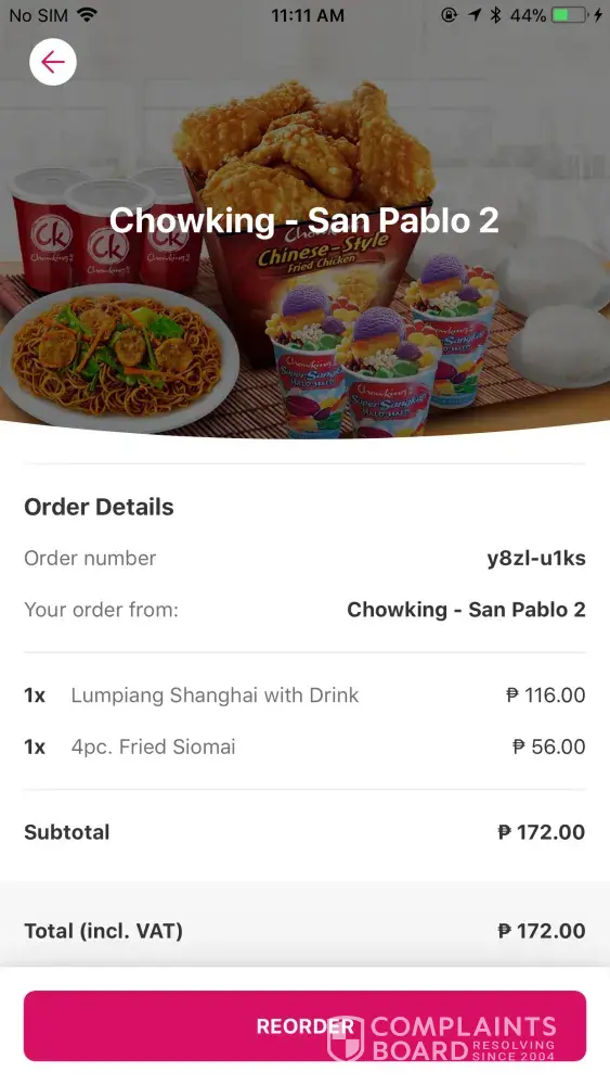 Chowking We ordered on food panda, siomai platter was not delivered by the rider