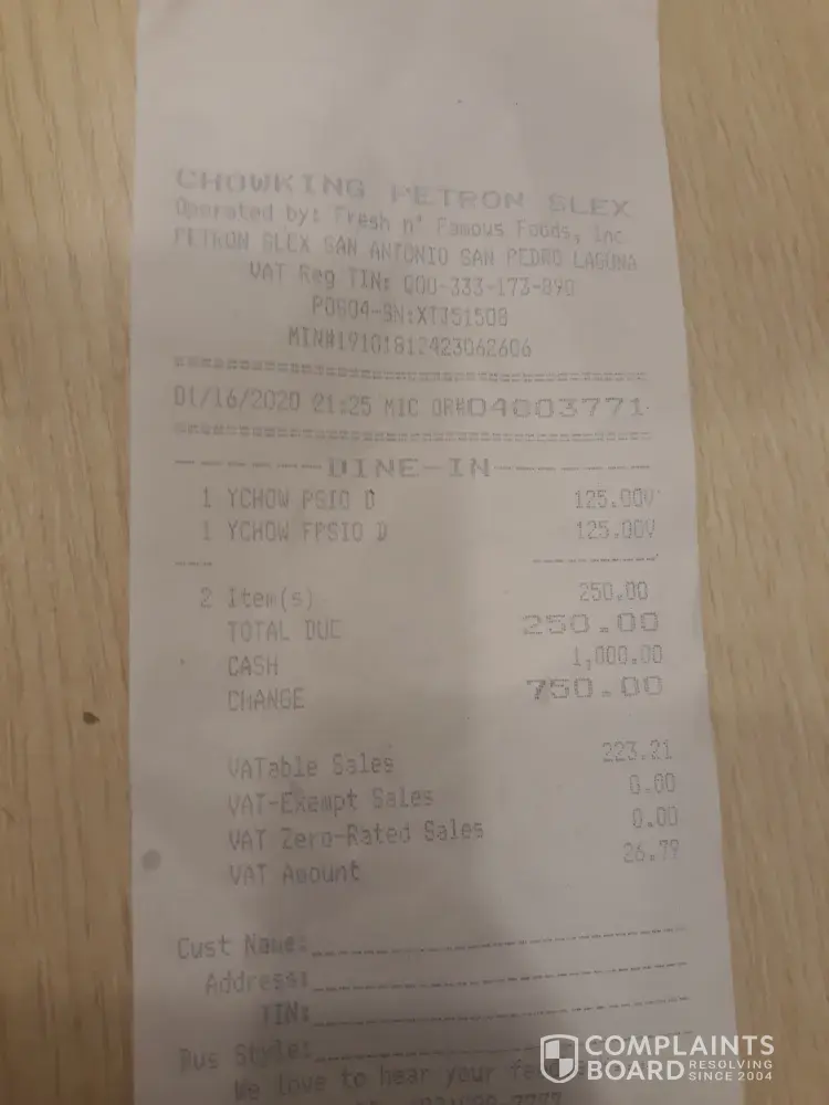 I want to share my feedback to your store chowking rotonda pasig palagi na lang sa tuwing mag ttake out kami wala laging condiments or sauce lagi na lang kulang madalas kami nag take out ng food every night pero same palaging may kulang pero this time may kulang na nga di pa maganda asal ng crew ninyo pinapalagpas lang namin pero this time sobra na sana ma...