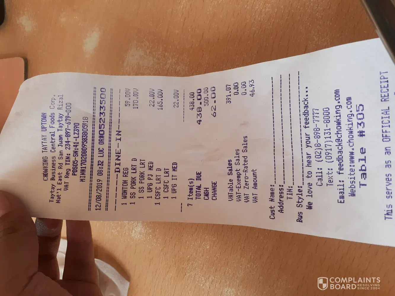 We ate at CK Taytay earlier. We waited 30mins for the foods to be served. No one even bother to inform us that we have to wait that long. The noodles was overcooked and taste horrible. We also asked for chili sauce the crew said that it was not available but they served chili sauce on the other table. We dont receive our money's worth. Its very disappointing because we always eat at CK and thats the first time we experienced that kind of service.