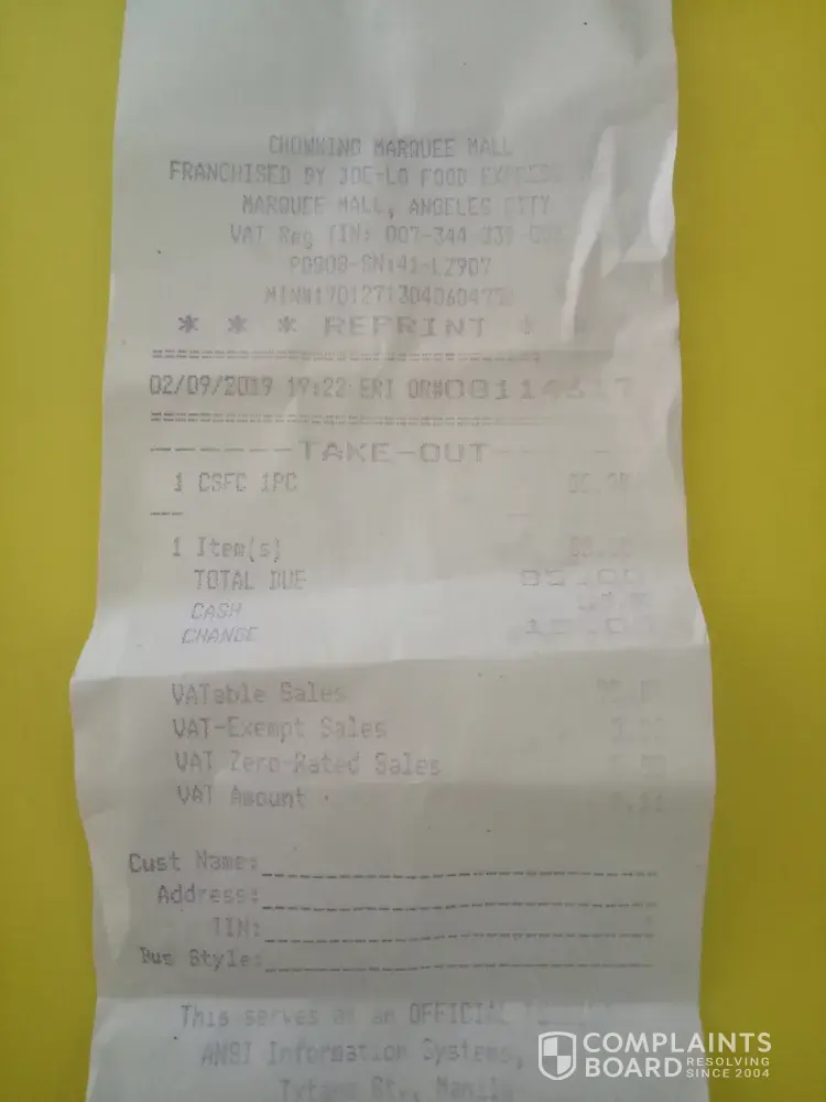 Good evening. Nag order ako sa branch niyo sa Marquee Mall Pampanga. Ang sabi ko sa cashier one piece chicken meal na thigh part. Na call na niya sa kitchen kung available at may sumagot naman na oo, pero 15mins daw sabi ng cashier. Okay naman dahil babalikan ko nalang. So after 15mins bumalik ako at dinala ko na yung meal, pagdating ko sa tindahan ko, nakita ko na breast part yung chicken ko. Bumalik ako sa Chowking at dun sa babaeng nagkuha ng order ko, nagtanong pa " Hindi po ba thigh part?" E malamang, babalik ba naman ako kung thigh part yung nakalagay diba? At sa pagkakatanda ko dapat naglalagay ng Special instructions sa order diba? Tapos sasabihin lang nung cashier "Ay Ma'am wala na po pala thigh kanina pa po" e ano yung narinig ko? Marunong akong magkapampangan. At isa pa, irereklamo ko talaga yang cashier niyo ang maldita, ERI yung name na nakalagay sa receipt ko, pero to be accurate, payat siya ng singkit. Akala mo kung sino malditang mag order take, nakalimutan na yata 7 key steps of cashiering? Iirap-irap pa. Nakakabwisit. And next time, kung TL man siya, hindi niya dapat hawak yung swipe card ng Manager, wala din MOD on floor that time. Bawal yon diba? Rule pa naman ni CK yan. Managers always on floor dapat. nakaka disappoint.