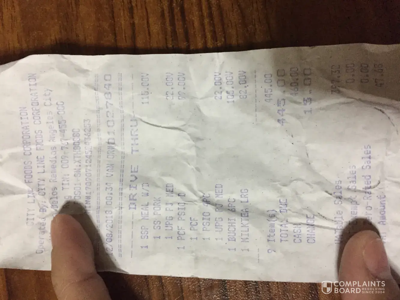 Decamber 08, 2018 12:03am nag drive thru kame then ok na lahat ng order pag abut samin naka lampas nakame ng window then napansin ng husband ko na parang kulang yung laman ng plastic then nag park kame pumasok sa loob husband ko para itanung bat wala yung bunchi sagut ng kahera hindi daw na take order hindi kase namen makita yung receipt that time so . Unalis kame ngayun nakita namin yung resibo natale order yung buchi . How can we refund it ? Sana bigyan pansin nyo tong message nato . lagi kame jan bumibili ng pagkain sobrang gustu ko yung food nyo kaya sana mavasa nyo to godbless .