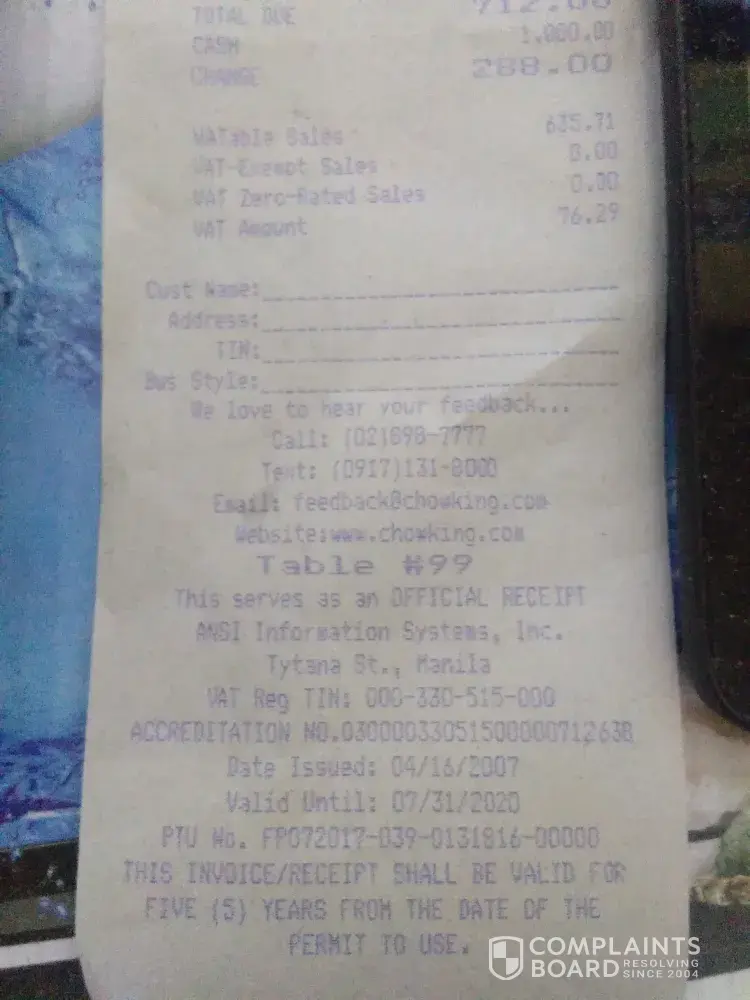 3. Why did you remove the hotline or email address of your complaints department on the receipt.