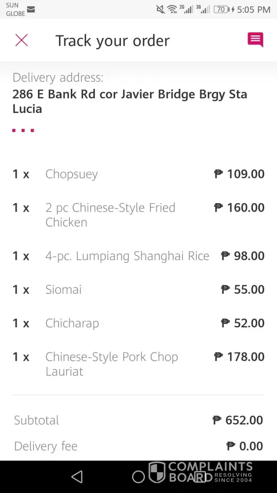 I wasn't able to take note of the manager's name but you could check his name on your records. If you would like to verify, I ordered three show fans, one porkchop, and a chicharap. Only the latter was delivered.
