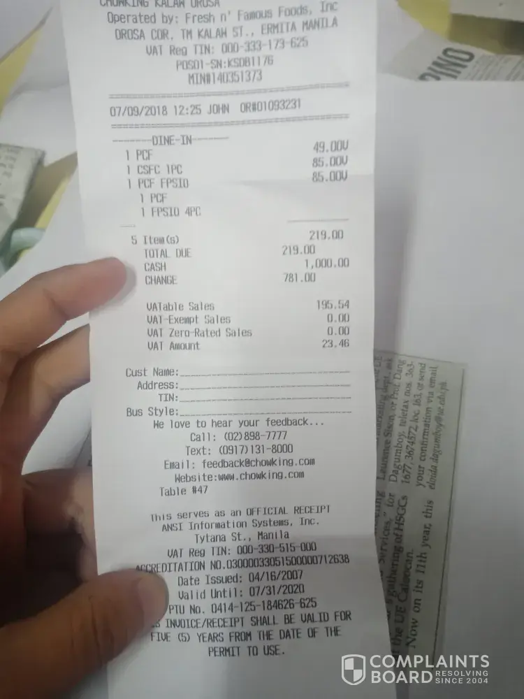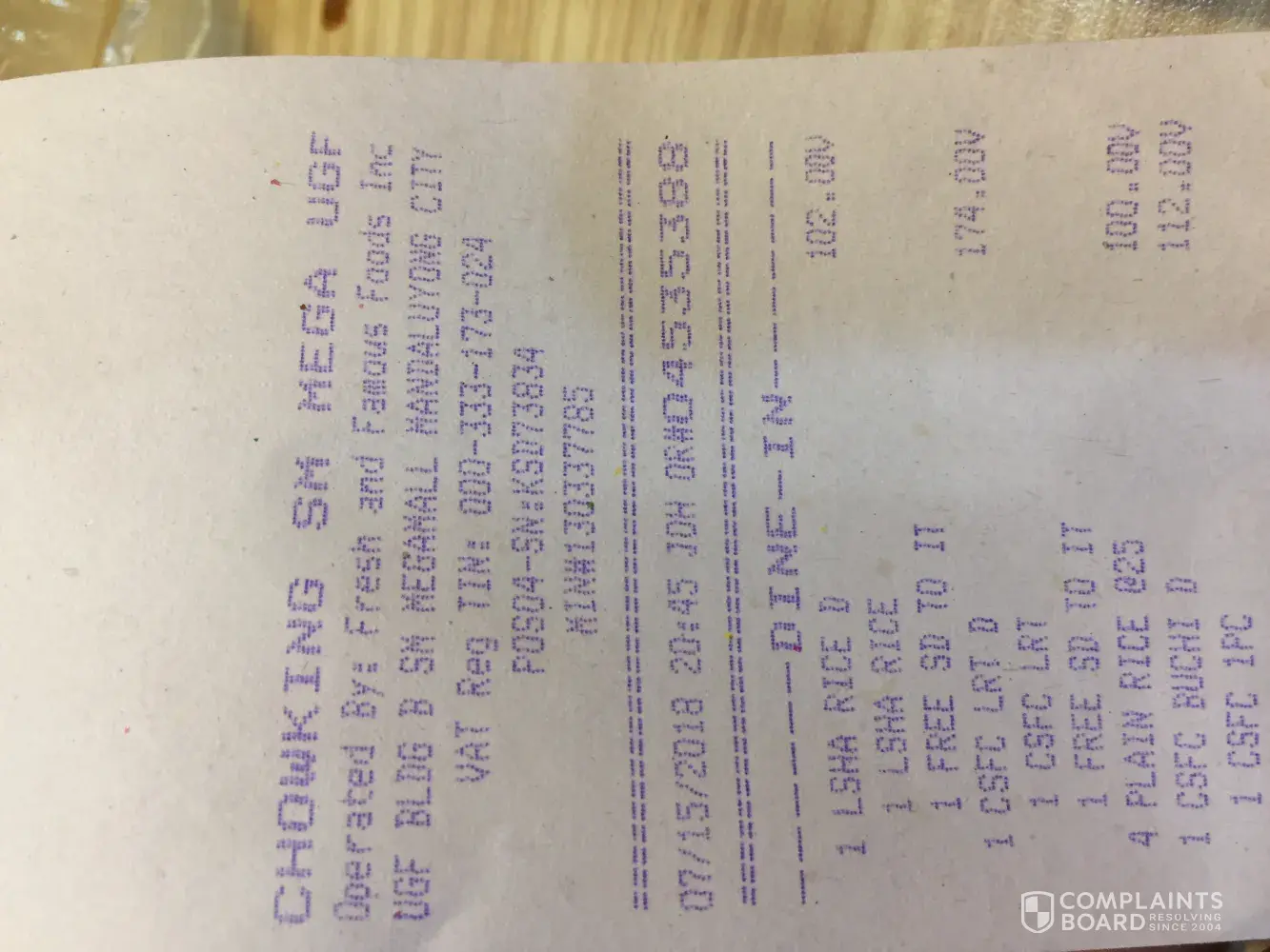 Im complaining chowking maimpis san fernando pampanga.