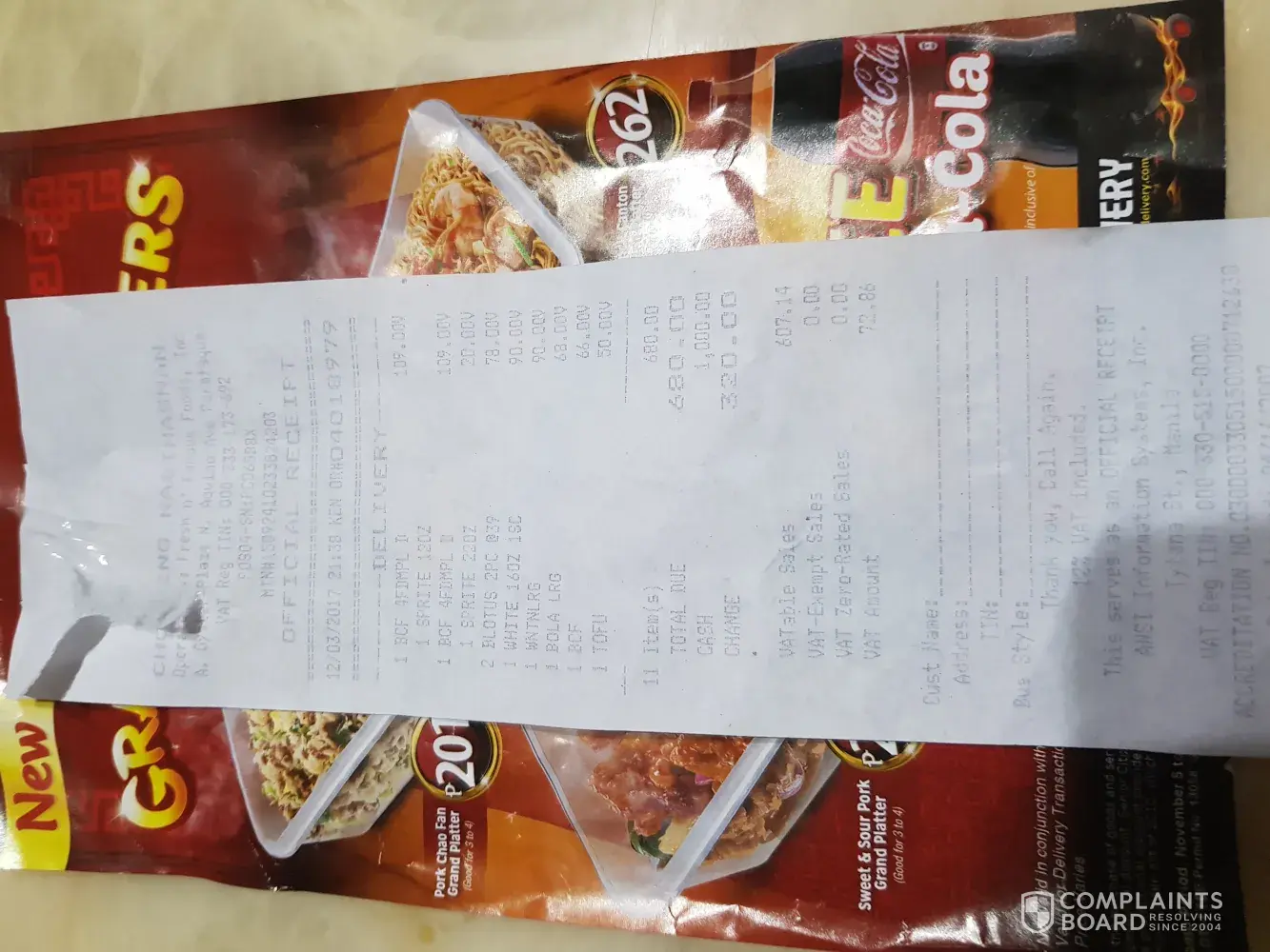 PS. I have sent this complaint last Sunday, December 03 thru Chowking's facebook; however, still no response. It seems that Chowking's team is not taking this seriously.