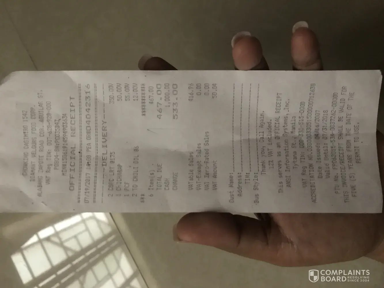 Goodafternoon tanung koh lang kung anung update aa complaint last july 13, 2017. Simula kc nung tinawagan ako ng chowking kahapon ng umaga wala n kaung update sakin kung anung ng yari ndi ako maniniwalang walapang result sa pag rereview nyo..anu ganun nlng ba un? Kelangan koh ba tlga pumunta dya para malaman kung anung ginagawa ng management nyo sa reklamo koh? Naipasa koh na lahat ng medical resut ko sainyo napatunay na my bacterial infection sa kinain kung chowpan 15:26 ung oras sa reciept ang counter si ms. Wilma, nka blue ako n t-shirt at nka blue na bag or# [protected]