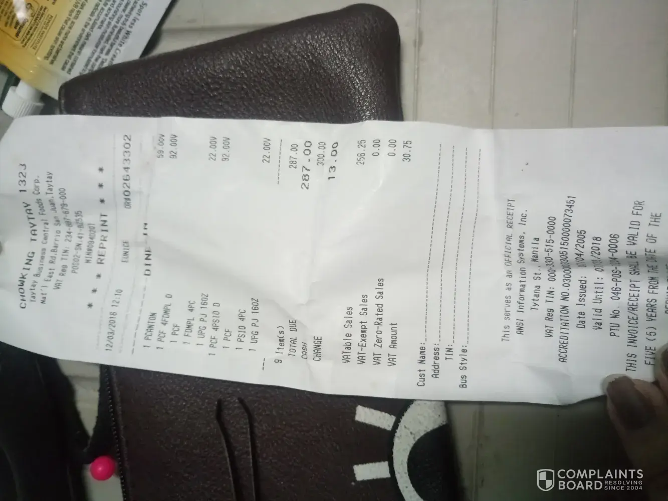 I patty sales my contact # is [protected] im from dasmarinas cavite, kumain kami sa tutuban mall chowking, this is my receipt # [protected] date : 12-11-2016 time: 18:56 receipt name : mario at ung cashier na npakasama ng ugali is euly ung nasa nameplate nya.