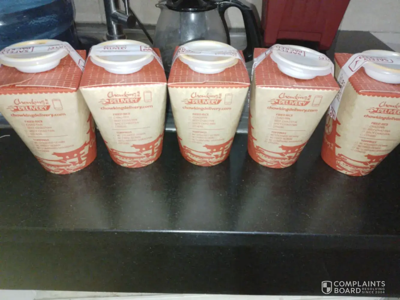 THIS IS LILIA JUDAYA I JUST WANT TO COMPLAINT REGARDING OUR ORDER THRU TELEPHONE CALL LAST JUNE 10, 2012 AT CHOWKING ZAMORA BRANCH AROUND 03:19 IN THE AFTERNOON...WE ORDER ( 5- HALO-HALO SPECIAL, 1- SAUSAGE PAO, 1-SAUSAGE SPEACIAL, 1- CHIX CHOW AND 2-BEEF PAO... BUT OUR ORDER ARRIVED AT 4:20 PM THRU DELIVERY... IN THE EVENING WE DONT TAKE OUR DINNER DUE TO WE HAD SAME FEELING OF STOMACH ACHE, LBM AND VOMITTING..WE ARE 5 PERSONS WHO EAT THIS PRODUCTS. BY AROUND QUARTER TO 10 IN THE EVENING WE HAVE TO GO TO THE HOSPITAL FOR MEDICATIONS AND TESTS..AND THE DOCTORS DIAGNOSE WAS ACUTE GASTROENTRRITIS WITH MILD SIGNS OG DEHYDRATION... IN OUR PART WE JUST WANT YOU TO KNOW... TO CHECK ALWAYS YOUR PRODUCTS OR FOOD THAT YOU SERVE IN EVERY CUSTOMER...HOPE YOU CAN GIVE ACTION REGARDING TO THIS MATTER...
