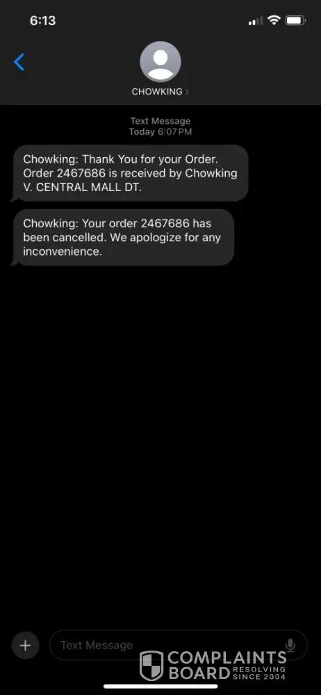 Chowking cancelled my order without any notice on why they are cancelling my order!
