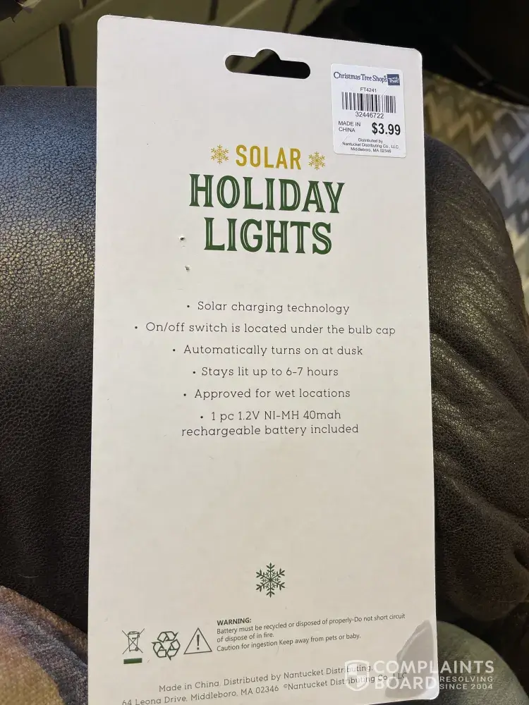 Our conclusion: ComplaintsBoard's review suggests Christmas Tree Shops is generally legitimate and safe for transactions. However, with a resolved complaints rating of 0% we recommend that you stay careful. Before interacting with Christmas Tree Shops, take the time to review customer feedback and the approach to resolving complaints.