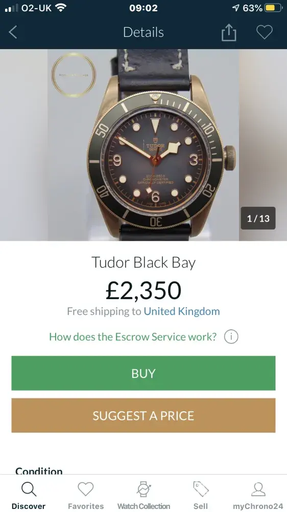 This is only the second time I have purchased a high end watch online. The first time, from another site 7 years ago, was okay. It was a used piece which they had refurbished and came with an actual certificate of authenticity. Crystal was a little off, had to ship back and they fixed it no problem. I sent the watch in to the manufacturer several years later for service and they performed it with no problem, sigh of relief, really authentic. I wanted a new watch, tried them first. Not possible to get anything with an original manufacturers warranty. I did not want a repeat of the previous experience. Enter Chrono24. New watch, well below msrp, original box and papers. Fast service. Followed up on purchase. The only problem was the 14 day window I had to get the watch authenticated. Tudor AD's understandably wanted nothing to do with it. I had to find a jeweler who dealt this brand in the used market and plead with them to look at it. This was the only snag in an otherwise excellent transaction. In the future, Chrono24 should consider having a list of dealers near the purchaser who would agree to authenticate pieces. Thank you for an overall very pleasant experience.