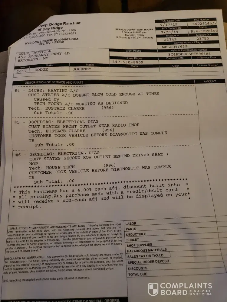 I purchased the 5 year CarDoc Warranty by this dealership in Shallotte, NC. I was led to believe it was a national Chrysler warranty. Moved to Ohio and is only available in a dealership 5 hours from me! Paid over $450 for this. Trying to get a pro-rated refund but was told no at the 888-473-0797 Car Doc Headquarters. Went to a dealership in Cleveland for...