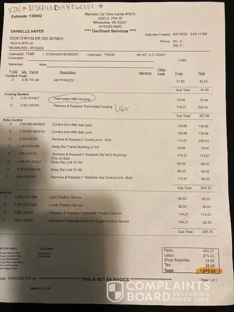 My 21 year old daughter brought me a car I found the car it is a 2009 chrysler 300 it was purchase on may 16, 2022 I took it to a auto shop in milwaukee wi and omg it's so so much stuff wrong with it you smell a burning smell its the thermostat with the housing has a hole and its leaking on something very hot under the hood the burning smell like something is on fire under the hood of the car. the auto shop person then told me to get the transmission checked it has two codes either for the engine or transmission that needs to be fixed asap when you push on the brakes I feel a wreid feeling under my feet the engine check light has been on like three days after buying the car if your driving on the high way you can only drive like 45 miles or the car starts to jerk very hard I brought the car from like 7 days ago when you try to start the car its now taken a minute to start I didnt buy this car from these car place to have to worry about all the things this car needs fix now I know why the saler said a comment like I will give you four month until your plates come yeah because the engine check like is on I bet. life is to already a struggle to much bad/negative stuff going on as of right now dont nobody have $6,000 just to throw away like that I know we dont that was so wrong of that car place to sale me a car knowing all of that stuff was wrong on it.