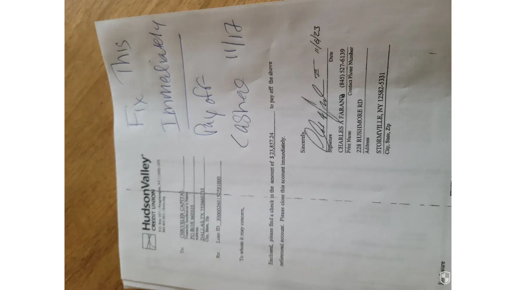 Chrysler Capital Lost pay off check