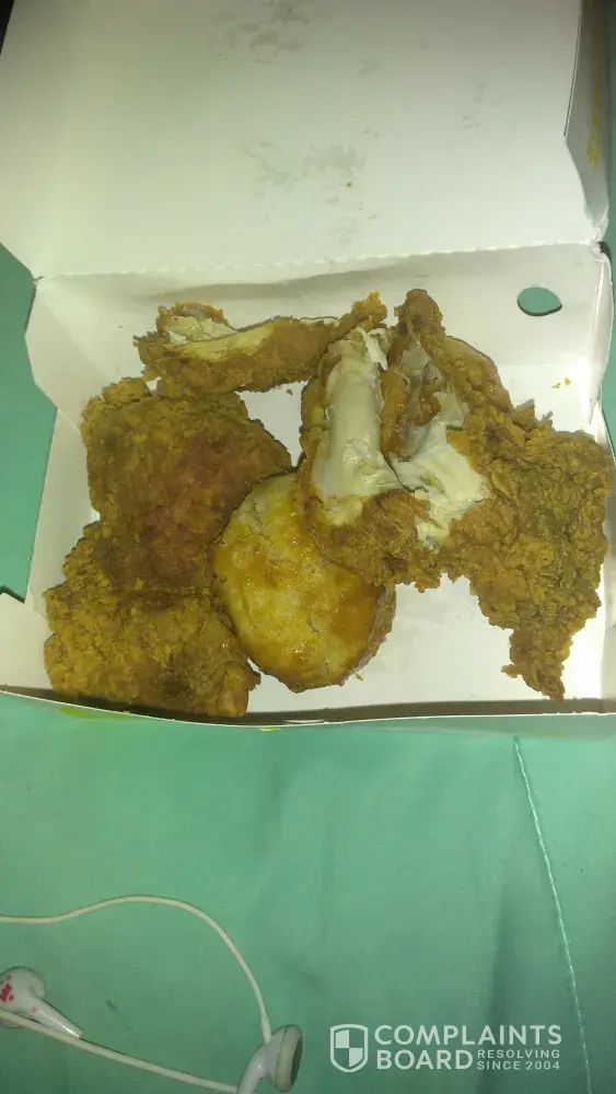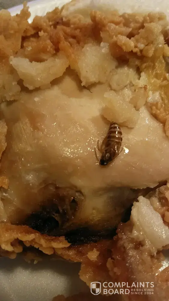 We bought a 9 piece meal on 2/26/2017. At closing time. My family gotten sick we couldn't figure out why. When my husband came home from work he heated up a piece off chicken. Pull the skin up and found a bug. Look like a warm or a roach in the chicken. I come to churches too confront them about the situation. And all he can say is nothing he can do. They don't have a rotten problem. Well something happen for me to have a bug inside my chicken.