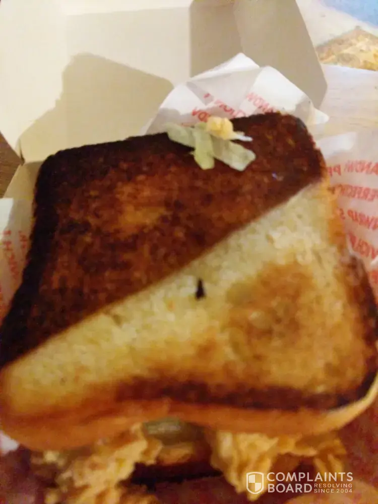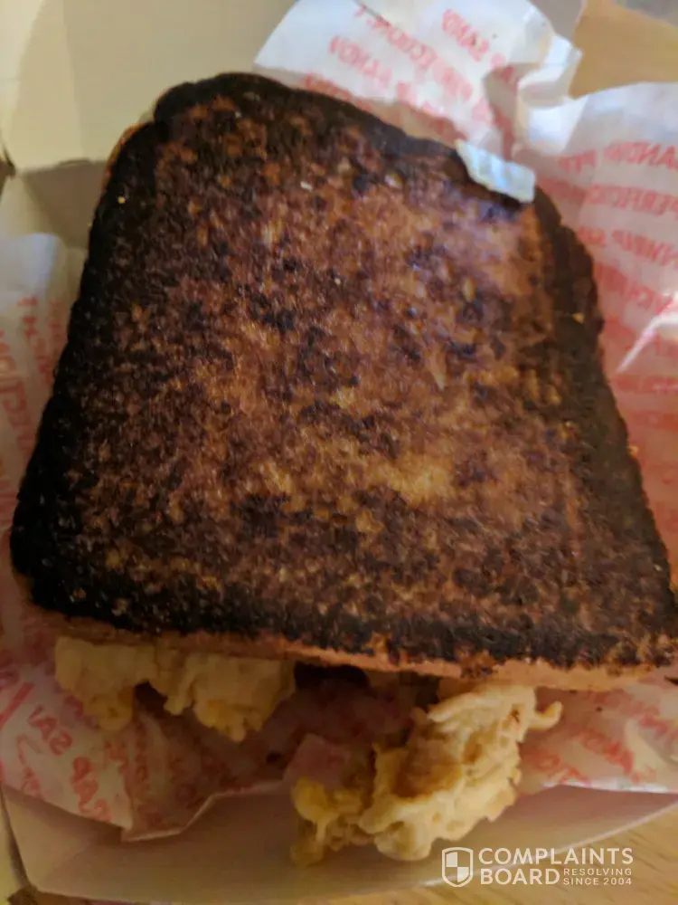 I was wishing I could post a picture. I just picked up a sandwich and the toast was completely burned on both sides! The service is good but the food is usually not good if you get a sandwich! I don't understand! Would have taken it back but I life 6 miles away. Very disappointed. I'll just toast my own bread and use the chicken. So do sad!