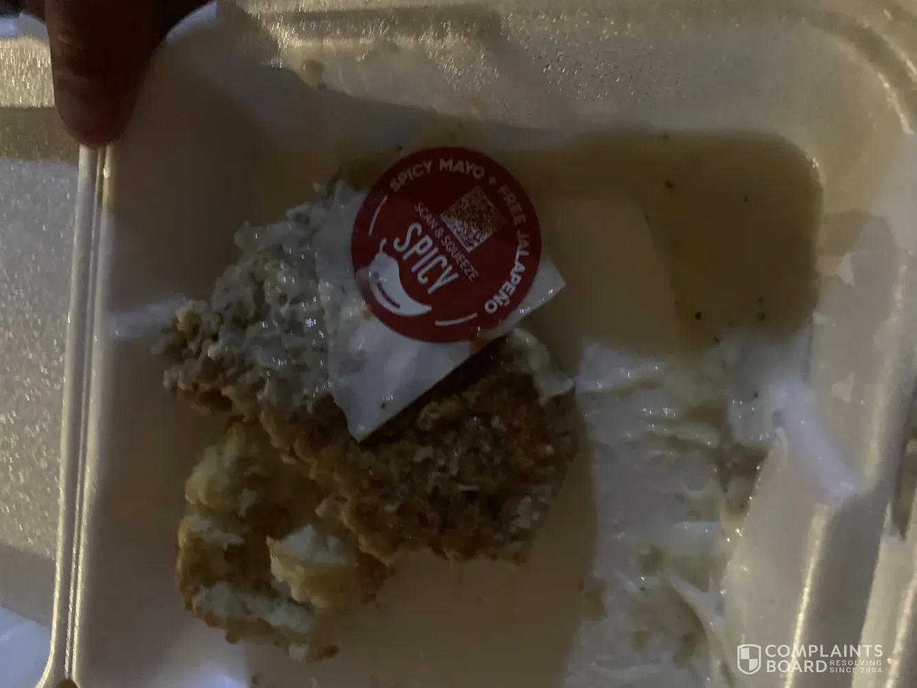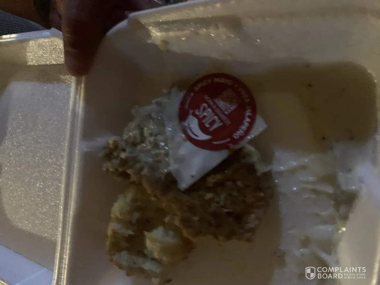 Always leave out side items today it was okra last time it was biscuits another time it was jalapeno peppers and today its raining and you can't go in because of corona virus and drive in bumper to bumper traffic and get home and as usual side items are not there are they purposely keeping it for their lunch too many times too many a very light skin woman and she talk under her breath being rude