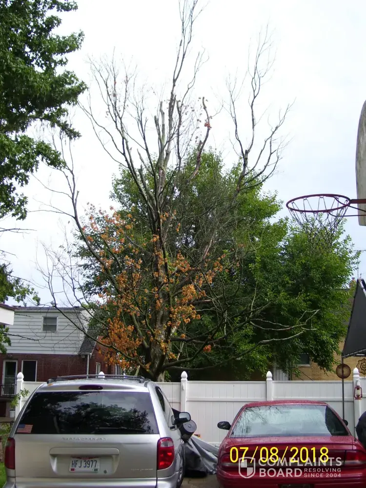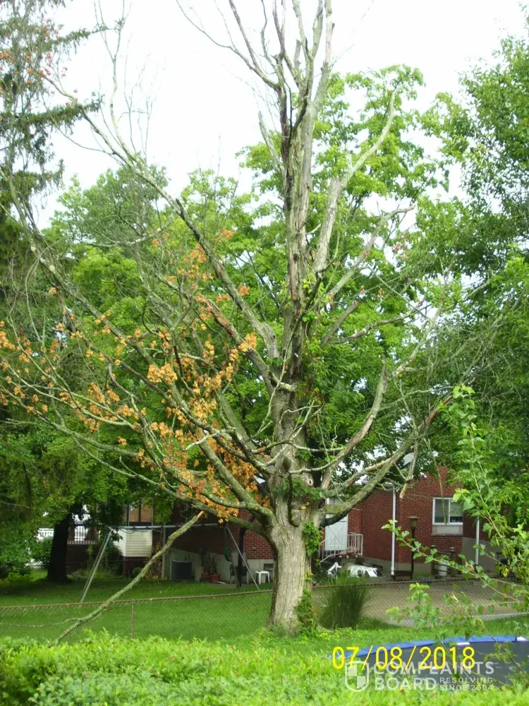 There is a maple tree at the rear of 5707 biscayne, cincinnati 45248, that cmha owns that is dead and is dropping large limbs. There are children that play in the yard, and it is 12 feet from my privacy fence and 6 feet from the neighbor on the other side. It's not a question of if it falls, but when it falls. My fence has been damaged and I had to repair it at my expense because I had no response from cmha.
