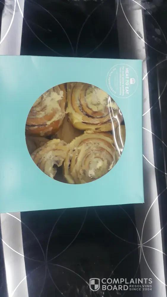 I purchased 2 boxes of them from my local Walmart for 9 something ( have the receipt )later that night took that box out of my freezer to defrost an eat to find black plastic pieces On top an around different Cinnabon's all inside under the plastic wrap that covers so the plastic was never opened so the only thing that got open was the box to take the tray out the pictures below will prove it shouldn't the packages be checked before boxed I'm very disappointed in this matter only because they really aren't that cheap to begin with then to have this happen so if someone could email back about this matter