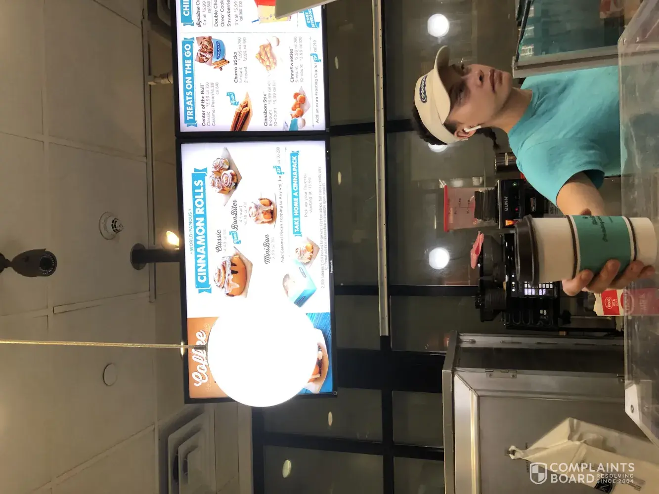 Store 1371. I think if you don't want to be at work just stay home instead of messing up other people's days. The Employee was on the phone, made no effort to greet whole we approached the counter. After 2min of standing I asked if she was ready, she looks up, doesn't say hello. i placed my order anyway, she rudely gives it to me. I asked her if she has any lids which she says "we don't have those" I've been to cinnamon before and got a lid to go. My son drops 2 of the cinnamon balls on the counter while I'm paying because it wasn't balanced right. She just stood there waiting for me to leave. she Then asks me if I want her to pick them up.i said no, I can get them but I'd like fresh ones. surely you don't expect me to eat food off a counter top. She mumbles, I mean they're clean but okay.. Completely rude and uncalled for. No sense of courtesy whatsoever. Unbelievably disgusted with that service. My son is only 7, as we walked away he said "mom why was she so mean, she's not very nice". Way to go cinnabon! Some great way to show kids how to act. Today is 05/03/2019. This happened at about 1400pm