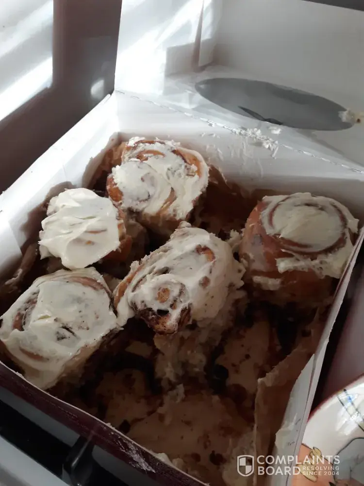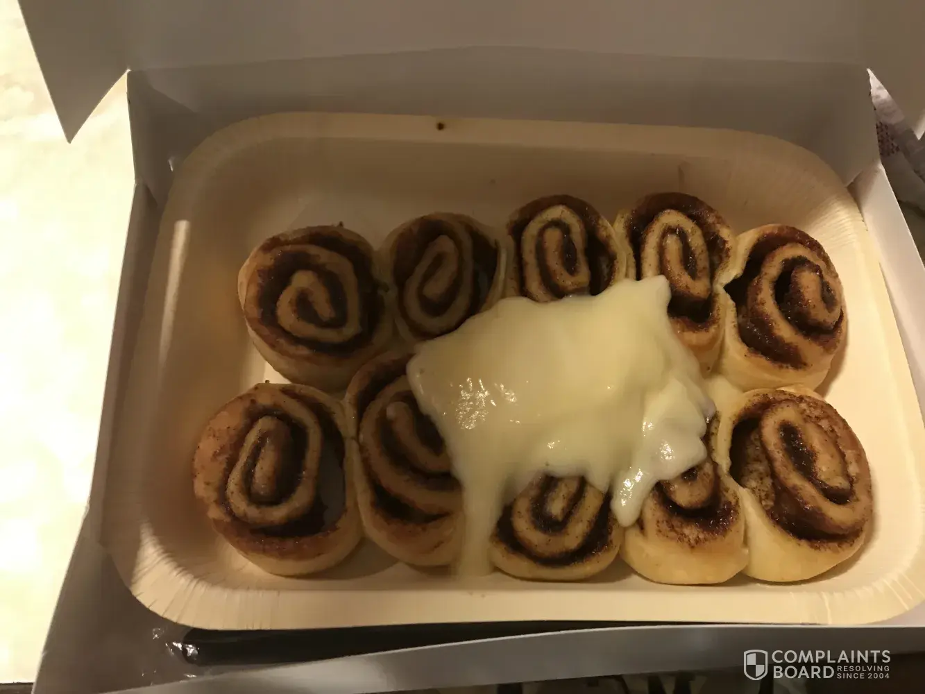 I purchase these about twice a month. I got a pack last week in the Altoona, PA location and they were not the same. Not sure if they were day old or whatever. After heating they were still gooie like they were not done. Anyway I called and basically I was told not sure what happened maybe I heated them wrong. Not sure that was what I wanted to hear. I know how to heat and eat a cinnabon.