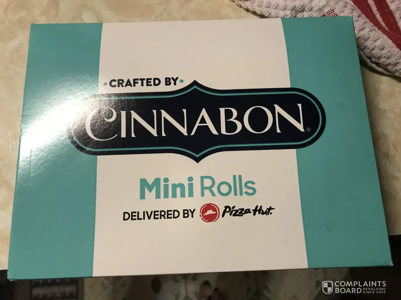 When we ordered the Cinnabon's from Pizza hut tonight we were looking forward to a wonderful experience. Upon arriving at out local Pizza Hut my wife inspcted the order. Everything looked good except the Cinnabon's. There, right smack dab in the middle was a glob of icing. Not spread around, not on every Cinnabon, nope a great big glob in the middle. My wife asked them if this was the way it is supposed to be and was answered with a firm, "well that is the way we are trained to do it!" She even asked the store manager that was there and he said the same thing, "that's just how we do it here!"