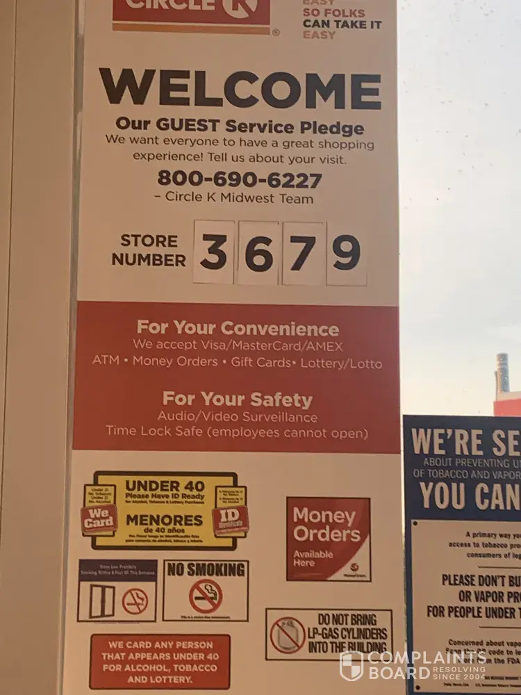On 9-3-2021 I went to the Circle K Store In Valdosta, Ga. I attached the letter I emailed them three different times. I tried calling customer service, but all I do is sit and listen to music. They don't answer. On 9-10-2021 I went to another Circle K and asked them about who else I could contact. They told me the manager would be there the next day. I'm...