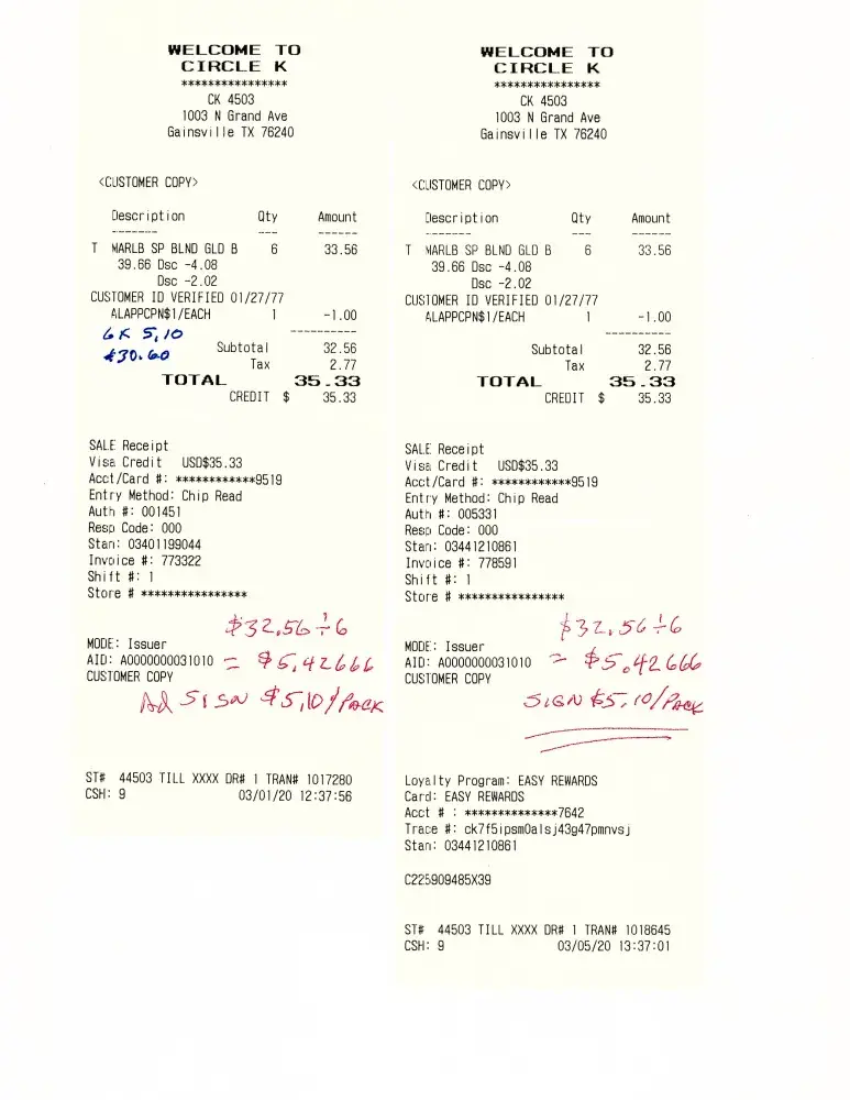 Repeatedly the POS system OVER CHARGES for Marlboro Special Select cigarettes. Store# CK 4503 Invoice# 778591 Dated 3/5/2020 13:37:01 Loyalty Trace#ck715ipsm0alsj43g47pmnvsj Placard Ad shows $5.10 per pack POS charges $5.42666 per pack Clerk states she can do nothing about it. Please contact me at to resolve this issue with the Circle K POS Over charges. Thank you D Croucher [protected]