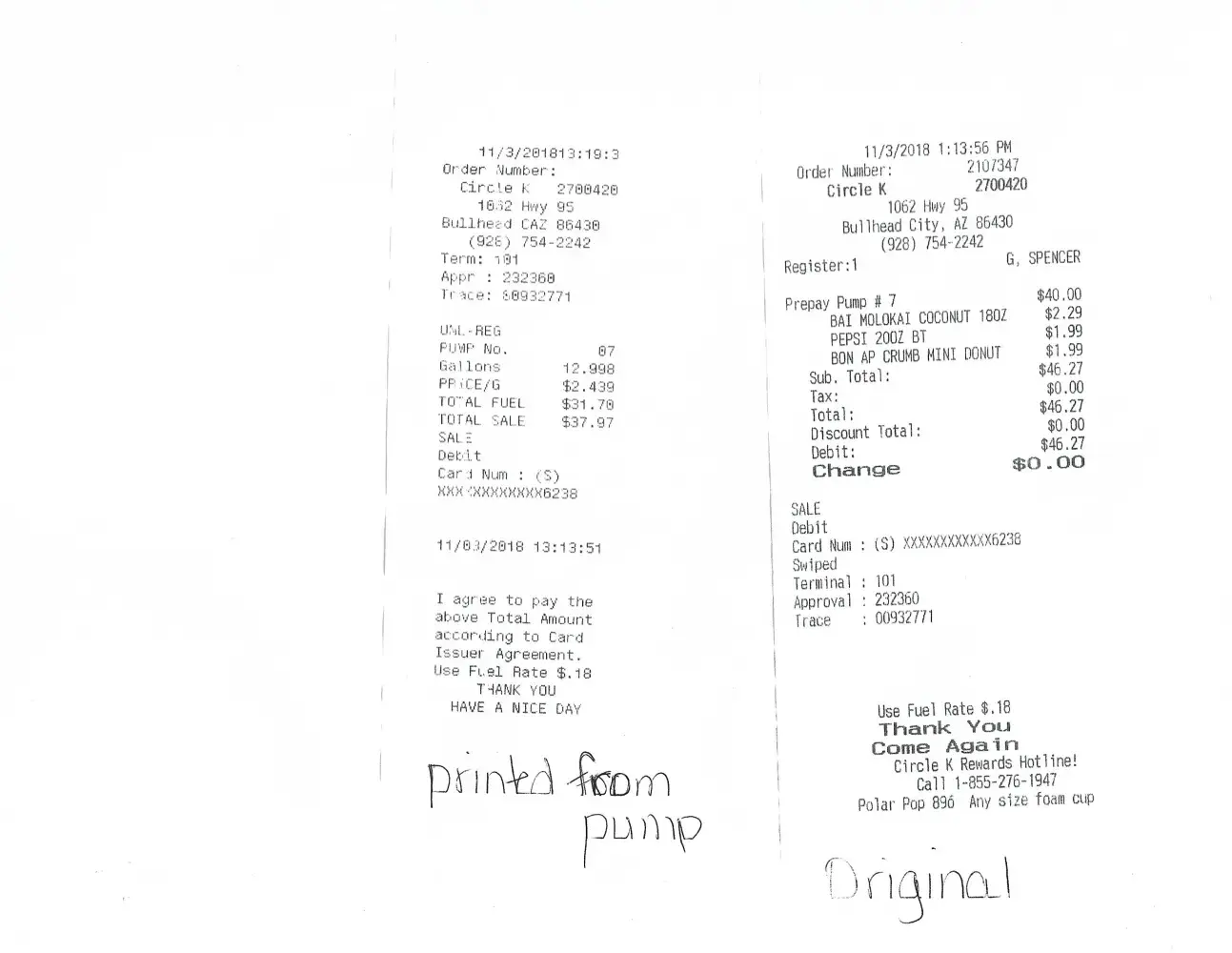 Pulled up to stores Gas Sign said 2.43 per gallon. When I got my receipt there was an additional $.18 cents for Use Fuel Rate? Which was charged to me also. I have lived in Arizona and have never, ever scene this or been charged this ridiculous fee for gas. I was expecting $2.43 per gallon but I refuse to pay for a secret amount of .18cents. I want an explanation along with a refund!