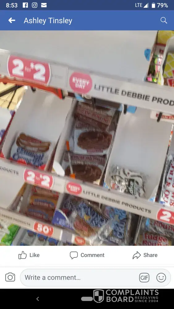 Roughly Sept 24th 2018 there was a sharps object found in the Little Debbie products inside the store. Apparently there had been any officer in there due to suspicious activity of someone. The picture of the incident has been posted on Facebook. I visit this store multiple times in week. Please tell me something has been done about this and the items have been removed and replaced.